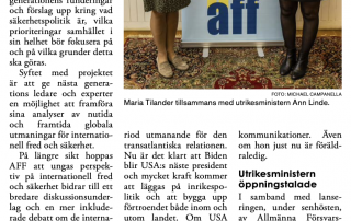 Vi kan inte ta vår demokrati, fred och frihet för given. Ett samtal kan försvara Sverige. I det samtal som Försvarsmakten startat om Sveriges säkerhet och försvar är Allmänna Försvarsföreningen (AFF) en partner - på två olika sätt. För det första så arbetar AFF genom vår verksamhet runt om i landet, via våra lokalföreningar, med att ta initiativ till seminarier och diskussioner om Sveriges säkerhet och försvar. För det andra så har AFF också en koordinerande roll inom projektet för att samordna andra partners olika aktiviteter inom ramen för projektet. Genom att samtala om Sveriges säkerhet och försvar sprider vi kunskap och på så [...]